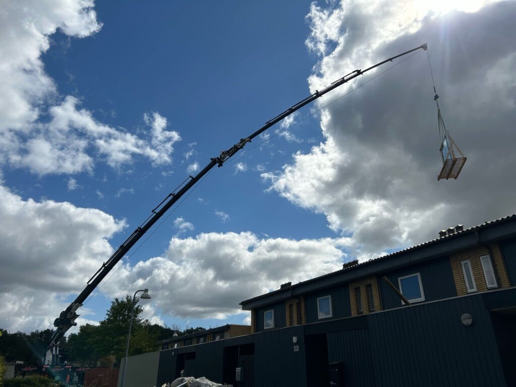 - 1 stk Dobbelt skydedør (denne skulle hejses ind med en stor lastbilkran)